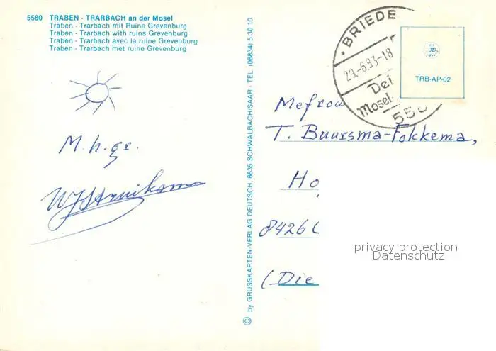 Traben-Trarbach Moselpartie mit Ruine Grevenburg Traben-Trarbach postalisch gelaufen nach 1965 Erhaltung siehe scans [WerneD78] WernPID7