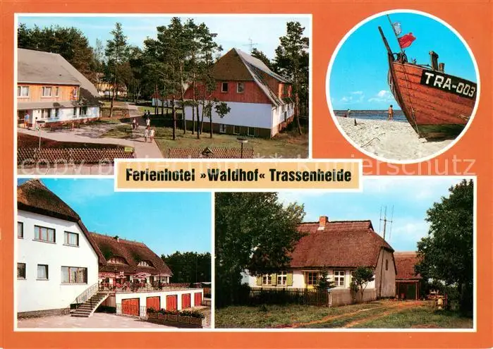 AK / Ansichtskarte Trassenheide_Usedom Ferienhotel Waldhof Strand Gaststaette Altes Fischerhaus Trassenheide Usedom