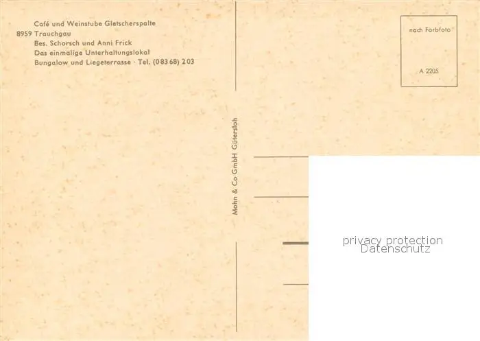 Trauchgau Cafe und Weinstube Gletscherspalte Bar Trauchgau postalisch nicht gelaufen nach 1965 Erhaltung siehe scans [WerneD78] WernPID7