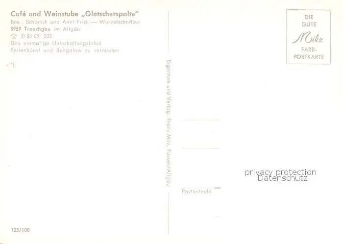 Trauchgau Cafe und Weinstube Gletscherspalte Bar Trauchgau postalisch nicht gelaufen 1921-1965 Erhaltung siehe scans [WerneD78] WernPID7