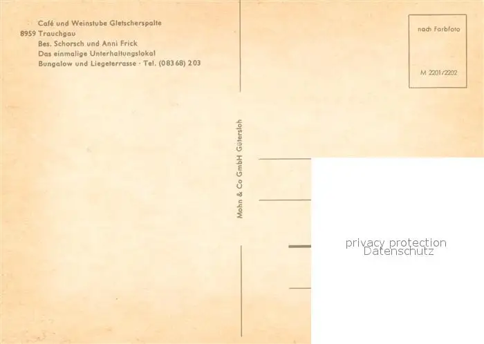 Trauchgau Cafe und Weinstube Gletscherspalte Gaststube Trauchgau postalisch nicht gelaufen nach 1965 Erhaltung siehe scans [WerneD78] WernPID7