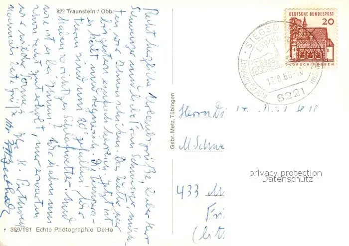 Traunstein_Oberbayern Durchblick zur Kirche Alpen Traunstein_Oberbayern postalisch gelaufen 1966 Erhaltung siehe scans [FriedD77] Frierer