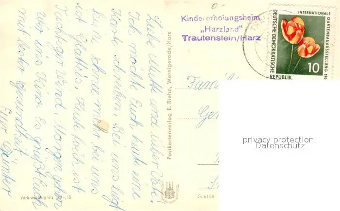 Trautenstein_Harz FDGB Kindererholungsheim Harzland Trautenstein_Harz postalisch gelaufen nach 1965 Erhaltung siehe scans [LiesaD40] LiesID40