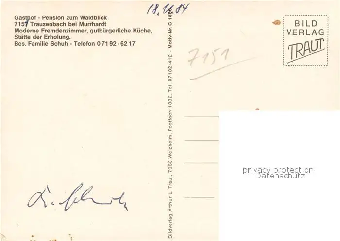 Trauzenbach Gasthof-Pension zum Waldblick Aussenansicht Trauzenbach postalisch nicht gelaufen 1984 Erhaltung siehe scans [LiesaD40] LiesID40
