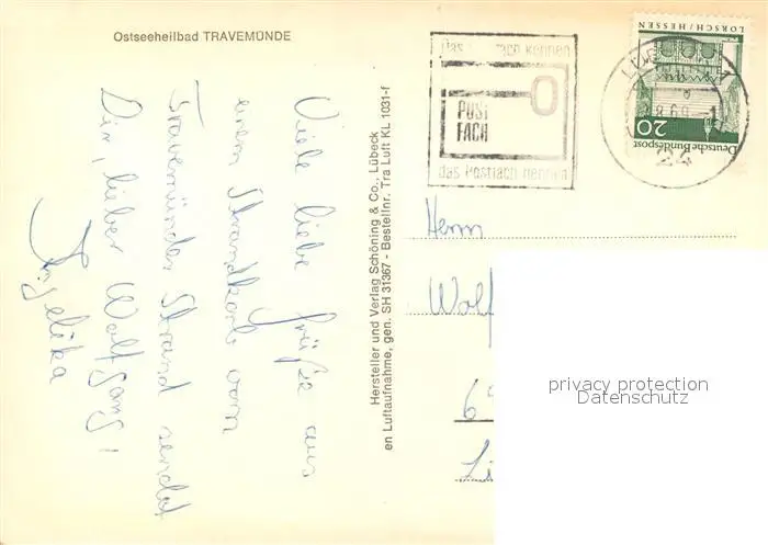 Travemuende_Ostseebad Fliegeraufnahme Strand Travemuende_Ostseebad postalisch gelaufen 1969 Erhaltung siehe scans [KathaD81] Kathoren
