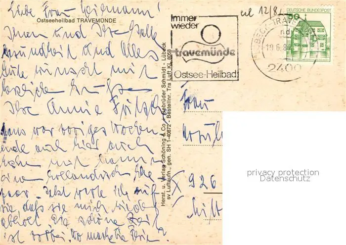 Travemuende_Ostseebad Fliegeraufnahme Travemuende_Ostseebad postalisch gelaufen 1981 Erhaltung siehe scans [KathaD81] Kathoren