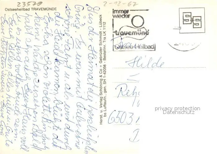 Travemuende_Ostseebad Fliegeraufnahme mit Faehrschiff Travemuende_Ostseebad postalisch gelaufen 1967 Erhaltung siehe scans [WerneD78] WernPID7