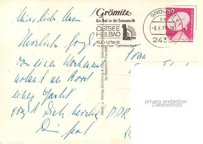 Travemuende_Ostseebad Hochhaus Hafen Strand Promenade Konzerthalle Steilufer Travemuende_Ostseebad postalisch gelaufen 1979 Erhaltung siehe scans [KathaD81] Kathoren