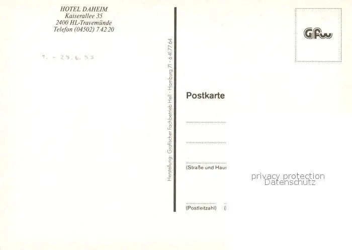 Travemuende_Ostseebad Hotel Daheim Travemuende_Ostseebad postalisch nicht gelaufen nach 1965 Erhaltung siehe scans [KathaD81] Kathoren
