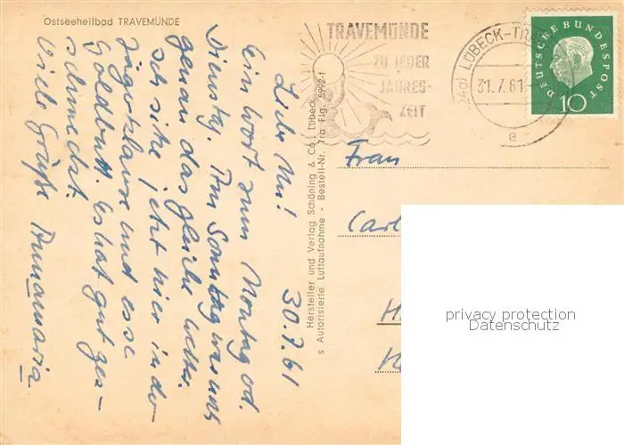 Travemuende_Ostseebad Kuestenpanorama Strand Kurhotel Travemuende_Ostseebad postalisch gelaufen 1961 Fliegeraufnahme Erhaltung siehe scans [FriedD77] Fliegeraufnahme Frierer