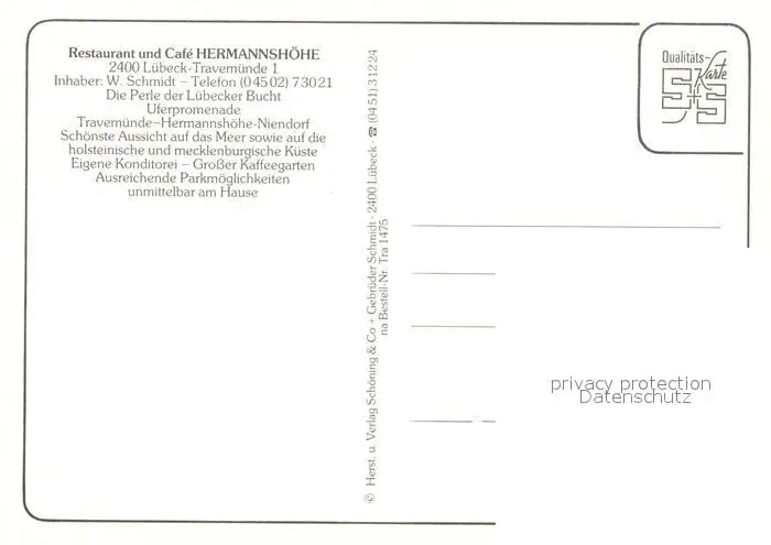 Travemuende_Ostseebad Restaurant Cafe Hermannshoehe Terrasse Kueste Landschaftspanorama Travemuende_Ostseebad postalisch nicht gelaufen nach 1965 Erhaltung siehe scans [FriedD77] Frierer