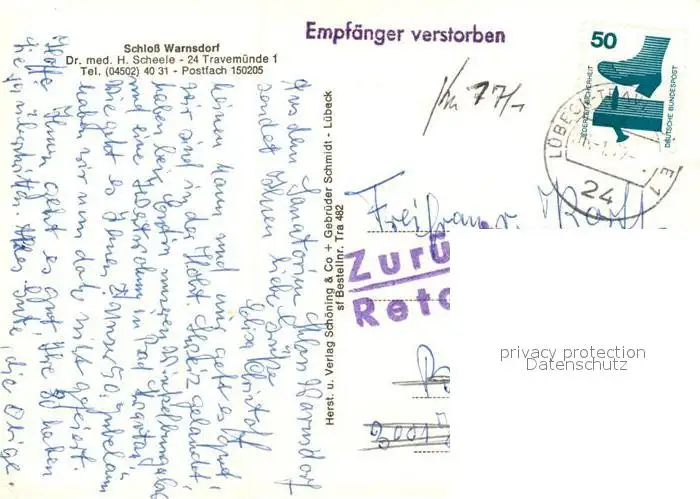 Travemuende_Ostseebad Schloss Warnsdorf Travemuende_Ostseebad postalisch gelaufen nach 1965 Erhaltung siehe scans [KathaD81] Kathoren