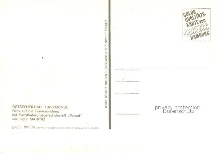 Travemuende_Ostseebad Travemuendung Yachthafen Segelschulschiff Passat Hotel Maritim Travemuende_Ostseebad postalisch nicht gelaufen nach 1965 Fliegeraufnahme Erhaltung siehe scans [FriedD77] Fliegeraufnahme Frierer