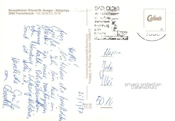 Travenbrueck Benediktiner Priorat St Ansgar-Nuetschau Fliegeraufnahme Travenbrueck postalisch gelaufen 1997 Erhaltung siehe scans [WerneD78] WernPID7
