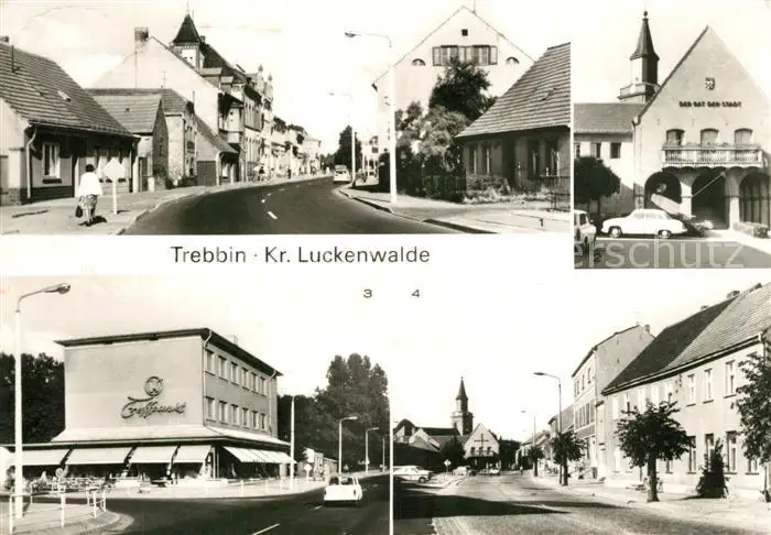 AK / Ansichtskarte Trebbin Bahnhofstrasse Rathaus Konsum Treffpunkt Berliner Strasse Trebbin