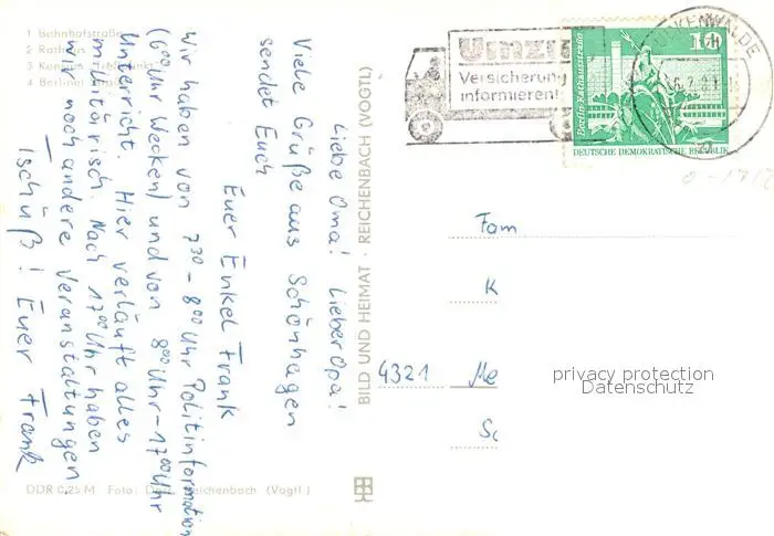 Trebbin Bahnhofstrasse Rathaus Konsum Treffpunkt Berliner Strasse Trebbin postalisch gelaufen 1981 Erhaltung siehe scans [FriedD77] Frierer