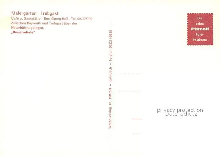 Trebgast Cafe Gaststaette Malergarten Bauerndiele Trebgast postalisch nicht gelaufen nach 1965 Erhaltung siehe scans [FriedD77] Frierer