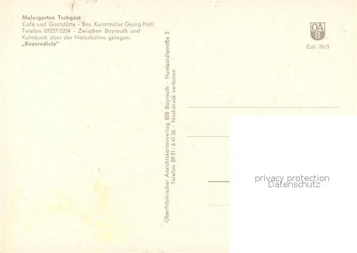 Trebgast Malergarten Bauerndiele Trebgast postalisch nicht gelaufen nach 1965 Erhaltung siehe scans [NatalD47] NataID47