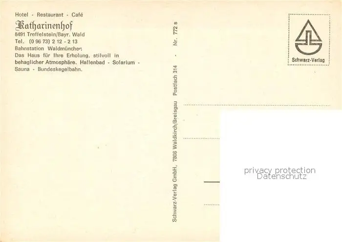 Treffelstein Hotel Restaurant Cafe Katharinenhof Empfang Heustadel Fremdenzimmer Treffelstein postalisch nicht gelaufen nach 1965 Erhaltung siehe scans [WerneD78] WernPID7