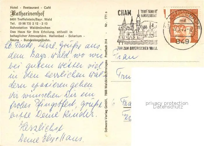 Treffelstein Hotel Restaurant Cafe Katharinenhof Treffelstein postalisch gelaufen 1976 Erhaltung siehe scans [WerneD78] WernPID7