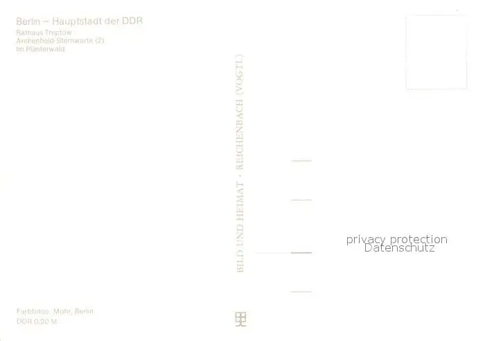 Treptow_Berlin Rathaus Archenhold Sternwarte Plaenterwald Treptow Berlin postalisch nicht gelaufen 1986 Erhaltung siehe scans [FriedD77] Frierer