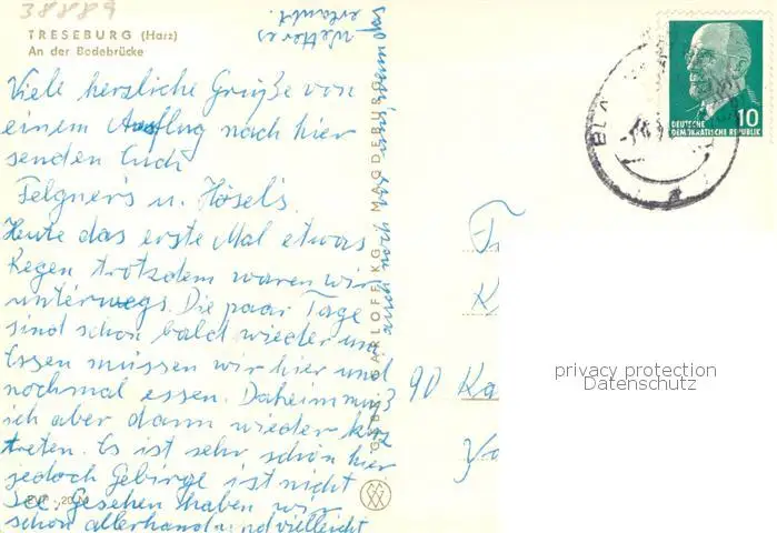 Treseburg_Harz An der Bodebruecke Treseburg Harz postalisch gelaufen 1921-1965 Erhaltung siehe scans [FriedD77] Frierer