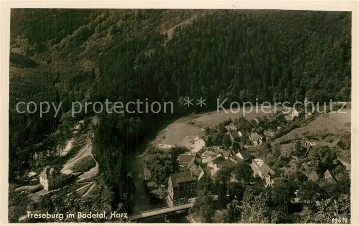 Treseburg_Harz Fliegeraufnahme Bodetal Treseburg Harz postalisch gelaufen 1937 Erhaltung siehe scans [LiesaD40] LiesID40