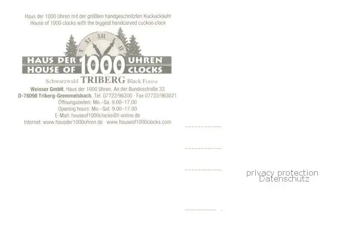 Triberg Haus der 1000 Uhren Groesste handgeschnitzte Kuckucksuhr Triberg postalisch nicht gelaufen nach 1965 Erhaltung siehe scans [WerneD78] WernPID7