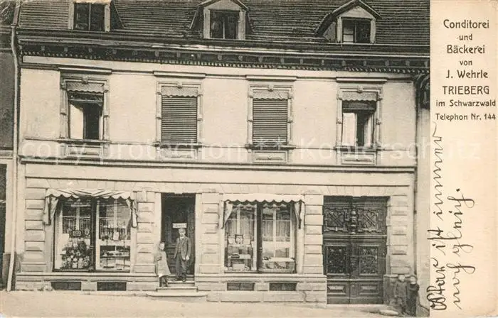 Triberg Schwarzwald Kategorie Alte Ansichtskarten Postkarten bx56649 Triberg_Schwarzwald Conditorei J. Wehrle Triberg Schwarzwald postalisch gelaufen 1909 Erhaltung siehe scans [NatalD47]