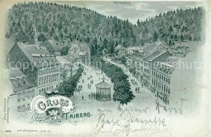 Triberg Schwarzwald Kategorie Alte Ansichtskarten Postkarten bx56223 Triberg_Schwarzwald Marktplatz Triberg Schwarzwald postalisch gelaufen 1899 Erhaltung siehe scans [NatalD47]