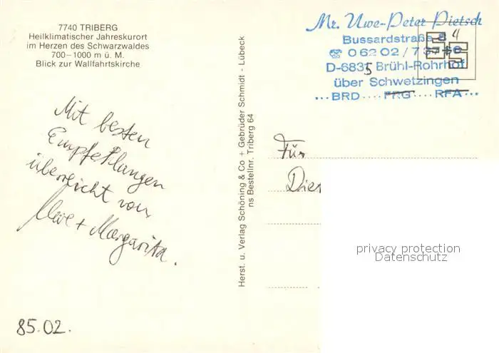 Triberg_Schwarzwald Ortsansicht mit Wallfahrtskirche Kurort Triberg Schwarzwald postalisch nicht gelaufen nach 1965 Erhaltung siehe scans [FriedD77] Frierer