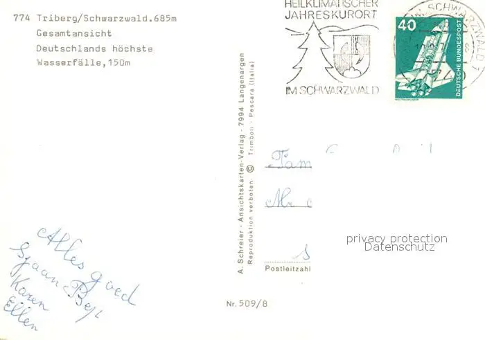 Triberg_Schwarzwald Panorama Triberg Schwarzwald postalisch gelaufen nach 1965 Erhaltung siehe scans [KathaD81] Kathoren