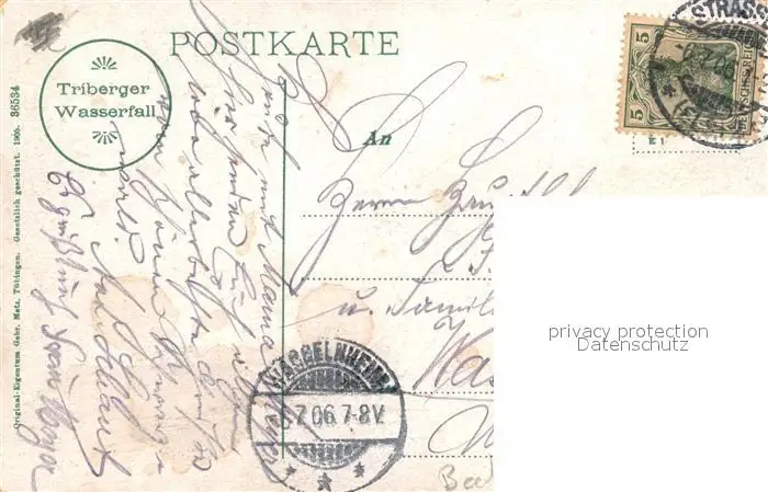 Triberg_Schwarzwald Wasserfall Triberg Schwarzwald postalisch gelaufen 1906 Erhaltung siehe scans [LiesaD40] LiesID40