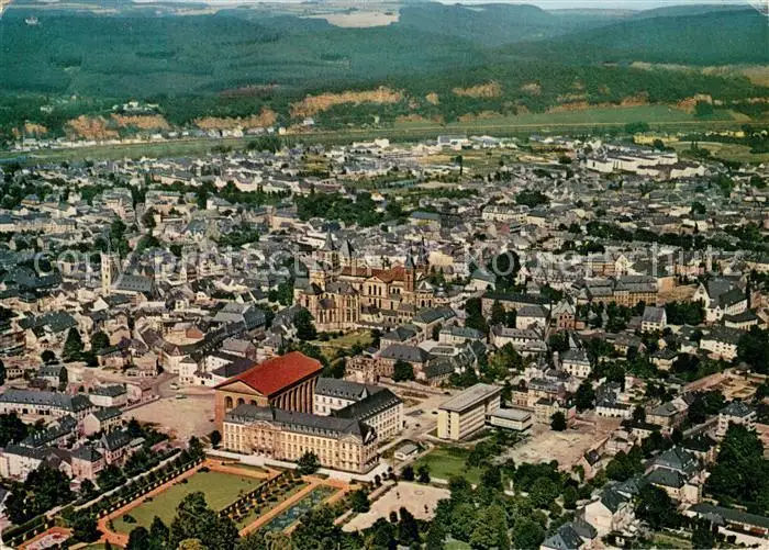 AK / Ansichtskarte Trier Basilika und Kurfuerstl Palais mit Domgruppe Fliegeraufnahme Trier