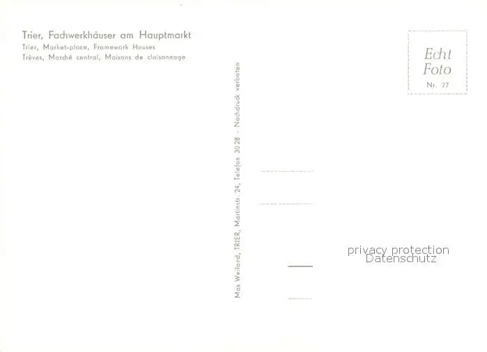 Trier Fachwerkhaeuser am Hauptmarkt Trier postalisch nicht gelaufen 1921-1965 Erhaltung siehe scans [WerneD78] WernPID7