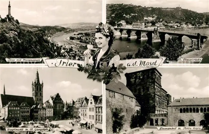 AK / Ansichtskarte Trier Roemerbruecke Blumenhof Porta Nigra Hauptmarkt Trier