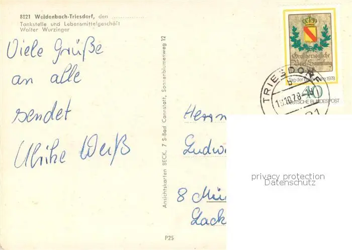 Triesdorf Teilansichten Kirche Schule Triesdorf postalisch gelaufen 1978 Erhaltung siehe scans [FriedD77] Frierer