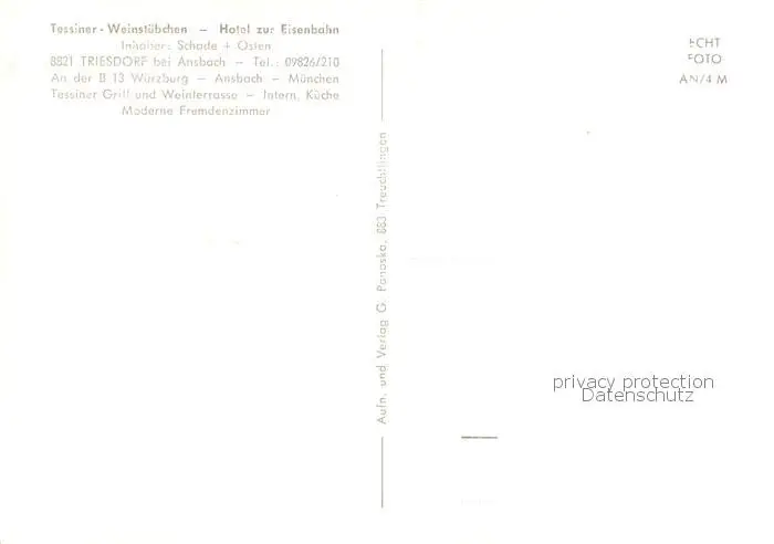 Triesdorf Tessiner Weinstuebchen Hotel zur Eisenbahn Triesdorf postalisch nicht gelaufen 1921-1965 Erhaltung siehe scans [WerneD78] WernPID7