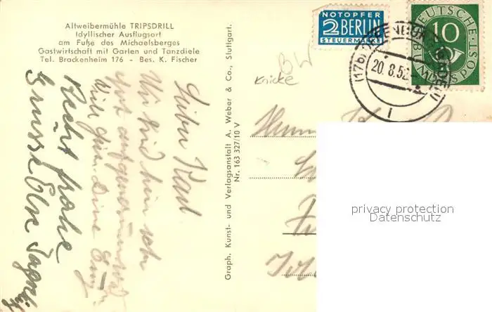 Tripsdrill_Cleebronn Michaelsberg Tripsdrill_Cleebronn postalisch gelaufen 1952 Erhaltung siehe scans [KathaD81] Kathoren