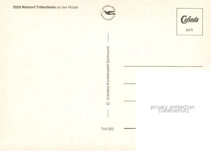 Trittenheim_Mosel Panorama Weinort an der Mosel Uferpromenade Bruecke Fahrgastschiff Denkmal Statue Wappen Trittenheim Mosel postalisch nicht gelaufen 1984 Erhaltung siehe scans [FriedD77] Frierer