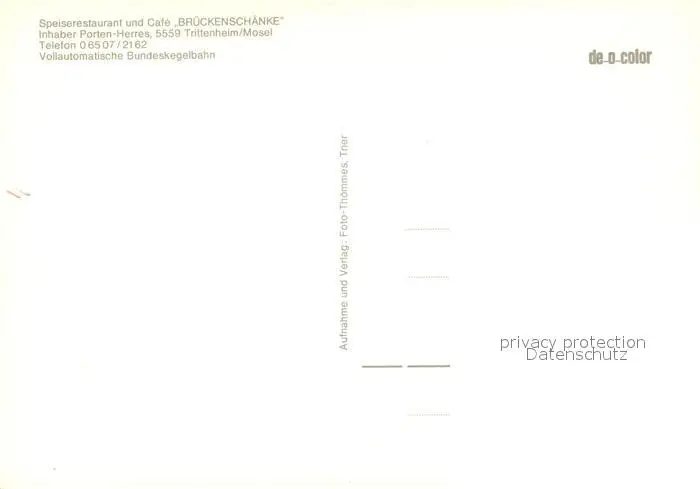 Trittenheim_Mosel Speiserestaurant Cafe Brueckenschaenke Trittenheim Mosel postalisch nicht gelaufen nach 1965 Erhaltung siehe scans [WerneD78] WernPID7