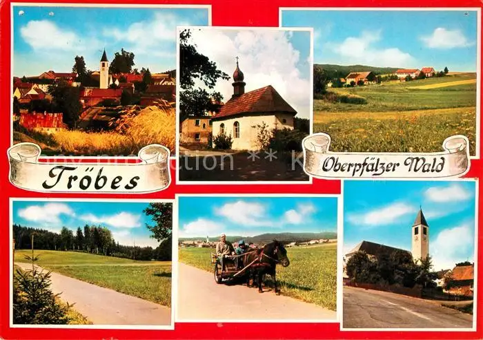 Troebes Teilansichten Kirche Ponywagen Landschaftspanorama Troebes postalisch gelaufen 1977 Erhaltung siehe scans [FriedD77] Frierer