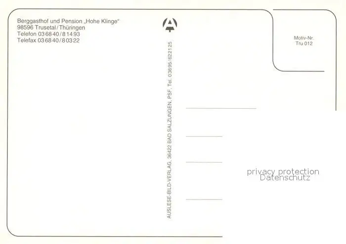 Trusetal Berggasthof Hohe Klinge Gastraeume Panorama Trusetal postalisch nicht gelaufen nach 1965 Erhaltung siehe scans [WerneD78] WernPID7