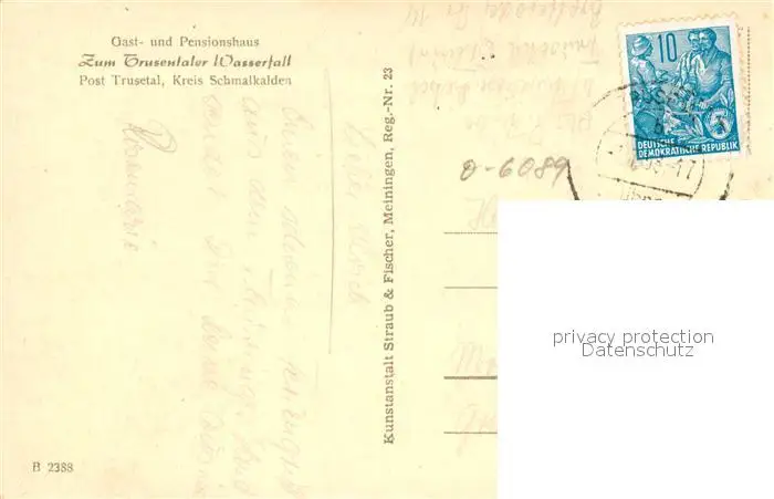 Trusetal Gasthaus Pension Zum Trusentaler Wasserfall Trusetal postalisch gelaufen 1958 Erhaltung siehe scans [FriedD77] Frierer