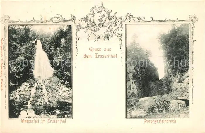 Trusetal Wasserfall im Trusenthal Porphyrsteinbruch Trusetal postalisch nicht gelaufen bis 1920 Erhaltung siehe scans [FriedD77] Frierer