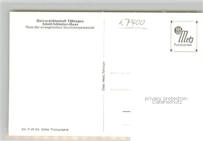 Tuebingen Adolf Schlatter Haus Tuebingen postalisch nicht gelaufen 1921-1965 Erhaltung siehe scans [WerneD78] WernPID7