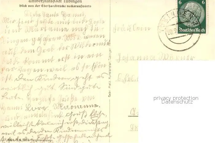 Tuebingen Blick von der Eberhardbruecke Tuebingen postalisch gelaufen 1921-1965 Erhaltung siehe scans [WerneD78] WernPID7