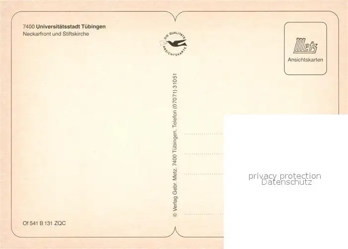 Tuebingen Haeuserpartie am Neckar Stiftskirche am Abend Tuebingen postalisch nicht gelaufen nach 1965 Erhaltung siehe scans [FriedD77] Frierer