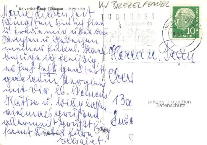 Tuebingen Kategorie Alte Ansichtskarten Postkarten bx64546 Tuebingen Marktplatz Fachwerk VW Kaefer Tuebingen postalisch gelaufen 1953 Erhaltung siehe scans [KathaD81]