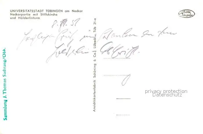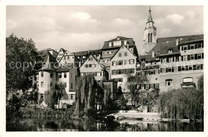 Tuebingen Neckarpartie mit Stiftskirche und Hoelderlinturm Tuebingen postalisch nicht gelaufen 1951 Erhaltung siehe scans [WerneD78] WernPID7
